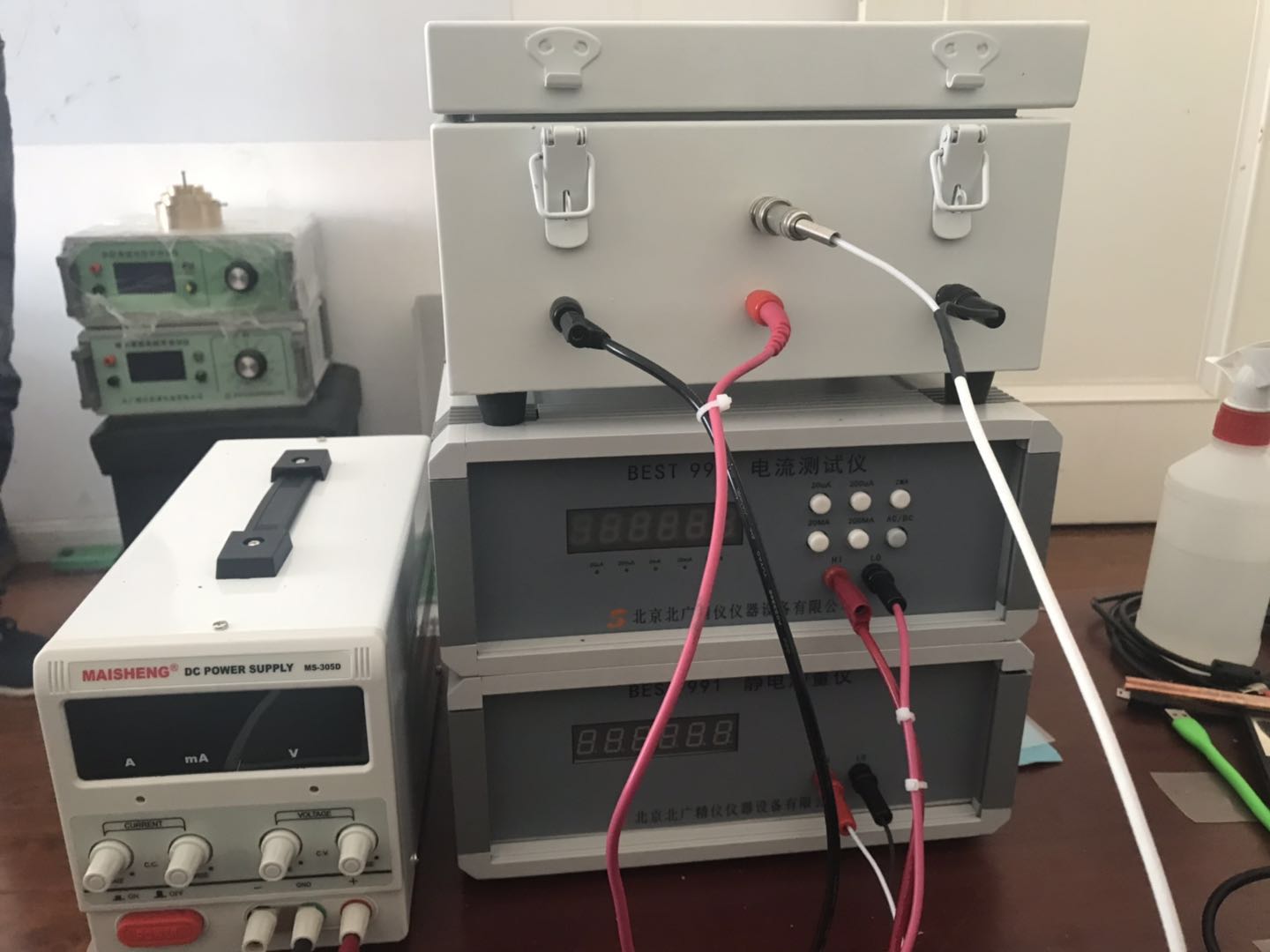 d. BEST-13静电计的输入与电压电极两端相接,测试时靠近电流正极性端的电压电极接静电计输入芯线,另一电压电极接BEST-13的地线。